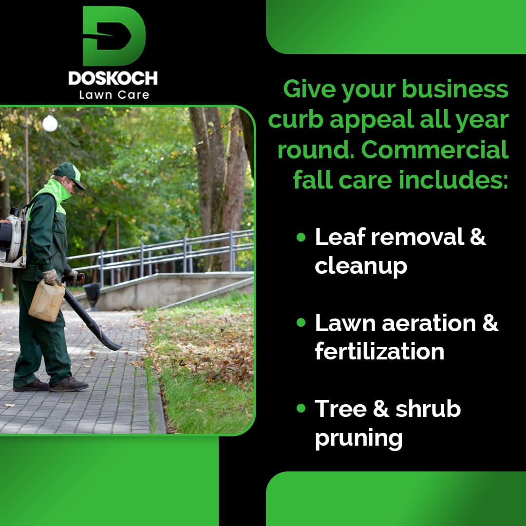 Businesses in Northeast Ohio can contact Doskoch Lawn Care & Landscaping Services at (216) 598-0748 or visit the Contact Page to schedule fall commercial landscaping in Northeast Ohio and professional commercial lawn care in Northeast Ohio.